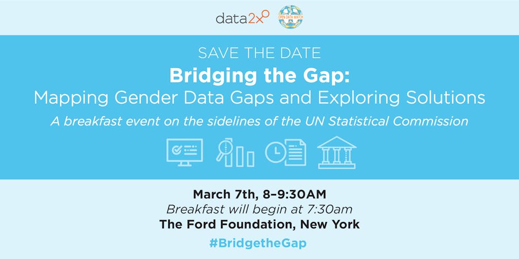 Hosted by Data2X and Open Data Watch alongside the 50th UN Statistical Commission, this breakfast event will bring together key agencies working to close gender data gaps at the national, regional and global levels to assess progress to date and signpost upcoming activities and potential areas of collaboration. The session will feature the launch of a new report by Data2X and ODW, “Bridging the Gap: Mapping Gender Data Availability in Africa”, on the trends in gender data availability in 15 sub-Saharan African countries and actionable solutions to fill gender data gaps for both the data and policy communities. Breakfast will be served at 7:30am. The event programming will begin at 8am.